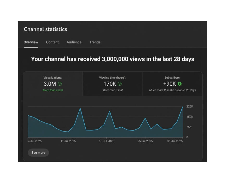 I’ve been a YouTuber since 2017, I started with a comedy channel and later built a business channel, with multiple videos surpassing 20,000 views. I’ve also helped client channels reach 1M+ views and generated millions of views through strategy, packaging, and high retention editing. I study what wins on YouTube, then apply it to my channel and my clients.